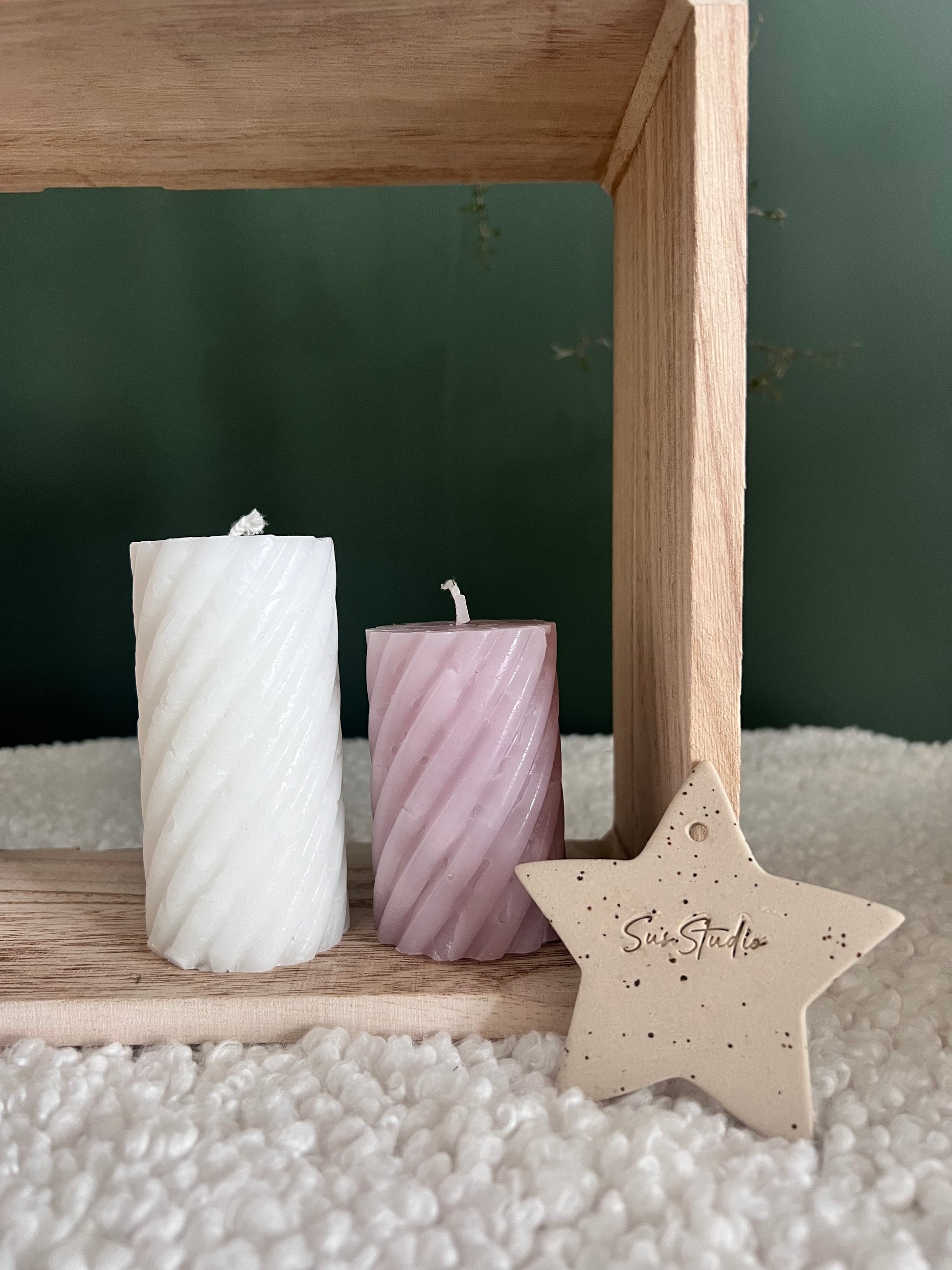Deze mooie witte kaars is lokaal gemaakt, met de hand.