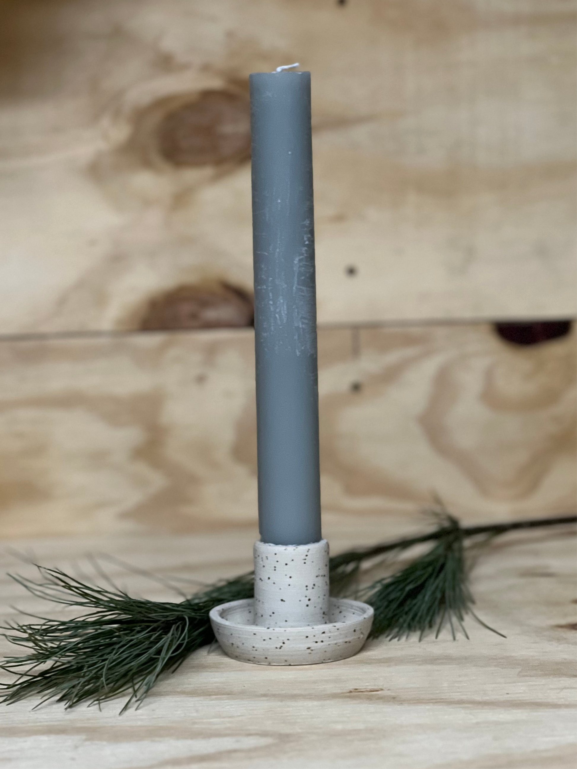 De mooie, keramieken kaarsenstandaard is met de hand gemaakt door onze keramiste uit Spanje. De blauwgrijze kaars is ook met de hand én lokaal (in Groot-Ammers) gemaakt en is speciaal ontworpen voor deze kaarsenstandaard ✨